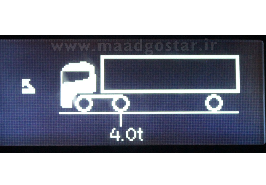 زمانی که وارد منوی شاسی میشوید درصورتیکه گزینه باسکول روی خودرو شما فعال شده باشد شما میتوانید وزن تقریبی قسمت بار خود رو ، را بروی صفحه کیلومتر ملاحظه نمایید .