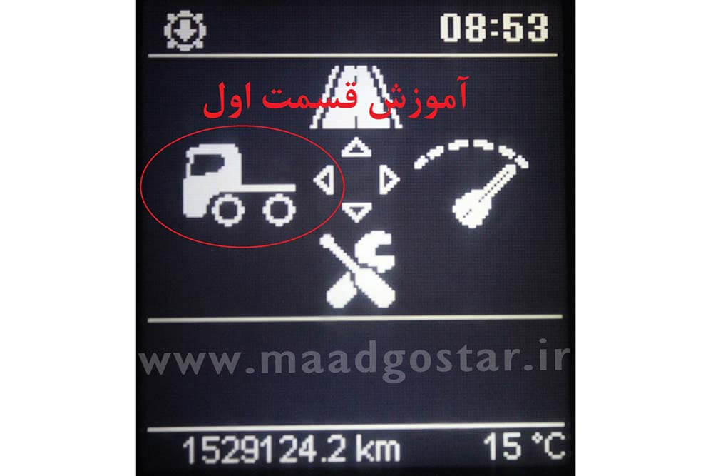 قسمت اول : شاسی ، همه خودروها این اطلاعات رو نمایش نمیدهند . توجه : این قسمت در صفحه کیلومترهای زبان فارسی و انگلیسی یکسان میباشد .