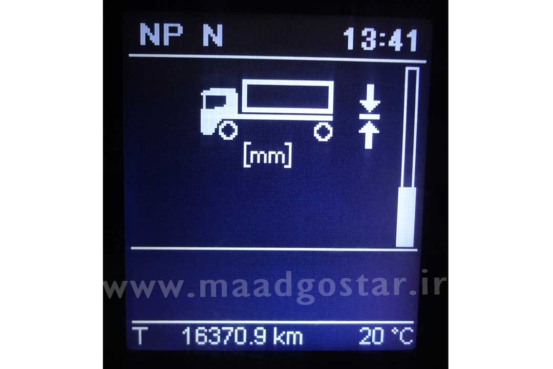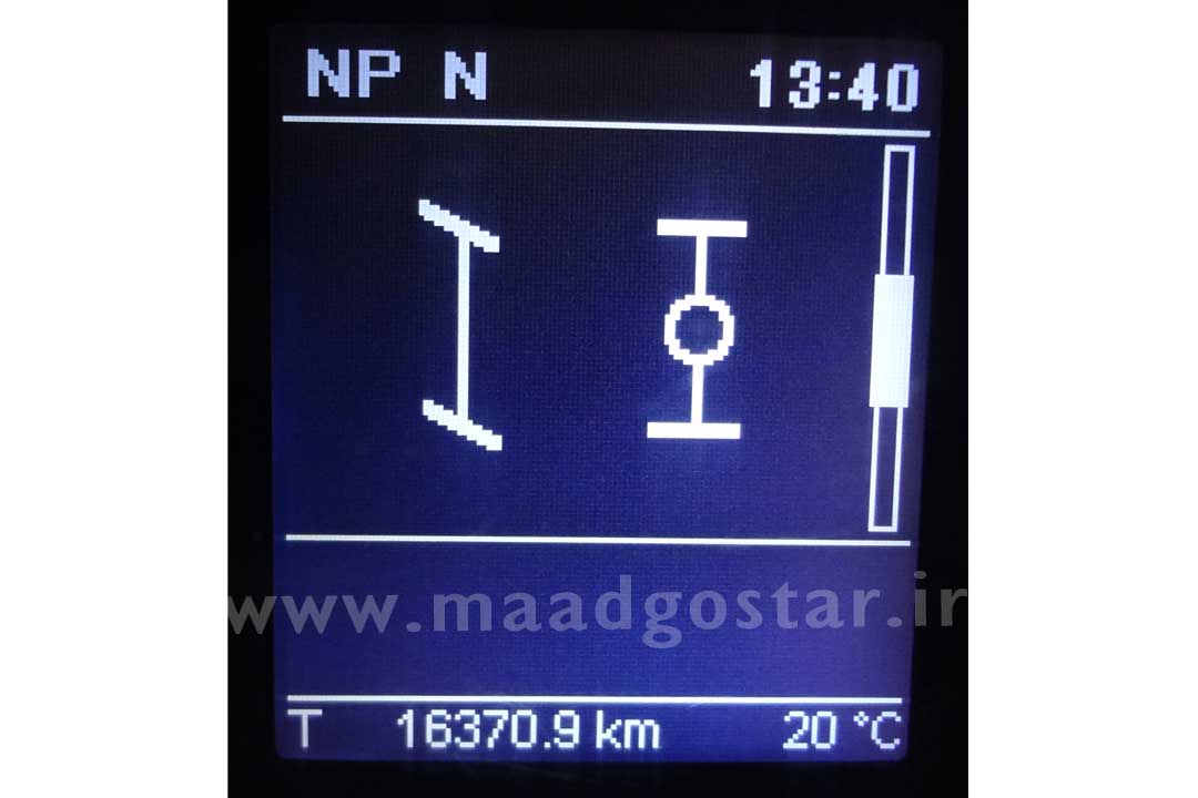 نمایش ارتفاع شاسی : نمایشگر نشان میدهد که خودرو در ارتفاع رانندگی قرار دارد یا ، اگر انحراف دارد ، میزان انحراف آن از ارتفاع رانندگی بر حسب میلیمتر چقدر میباشد .
