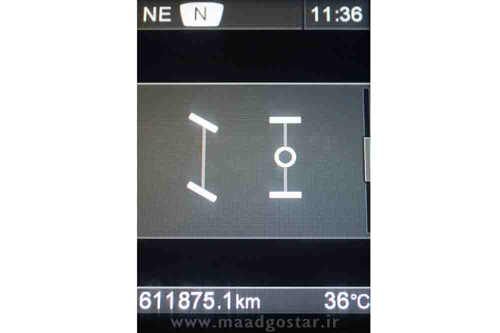 نمایش ارتفاع شاسی : نمایشگر نشان میدهد که خودرو در ارتفاع رانندگی قرار دارد یا ، اگر انحراف دارد ، میزان انحراف آن از ارتفاع رانندگی بر حسب میلیمتر چقدر میباشد .