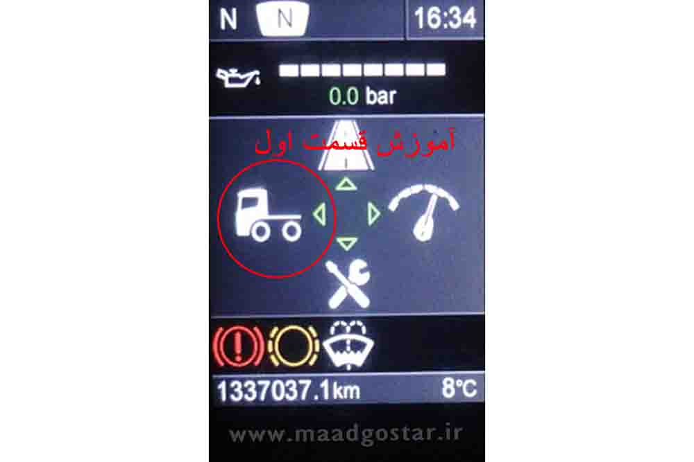قسمت اول : شاسی ، همه خودروها این اطلاعات رو نمایش نمیدهند . توجه : این قسمت در صفحه کیلومترهای زبان فارسی و انگلیسی یکسان میباشد .