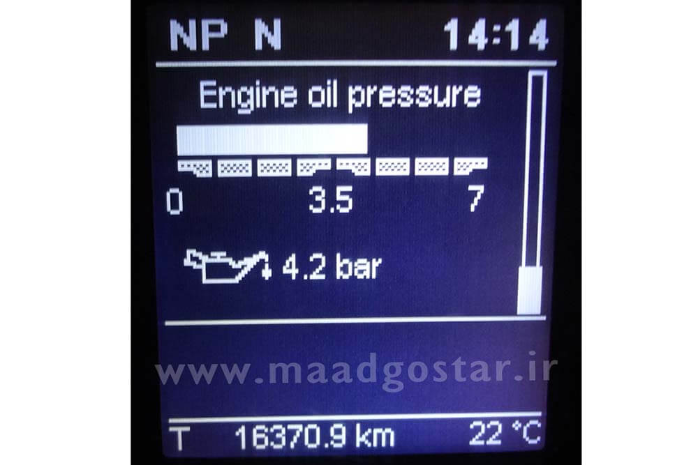 این قسمت میزان فشار روغن موتور را نشان میدهد . (تصویر صفحه کیلومتر با زبان فارسی)