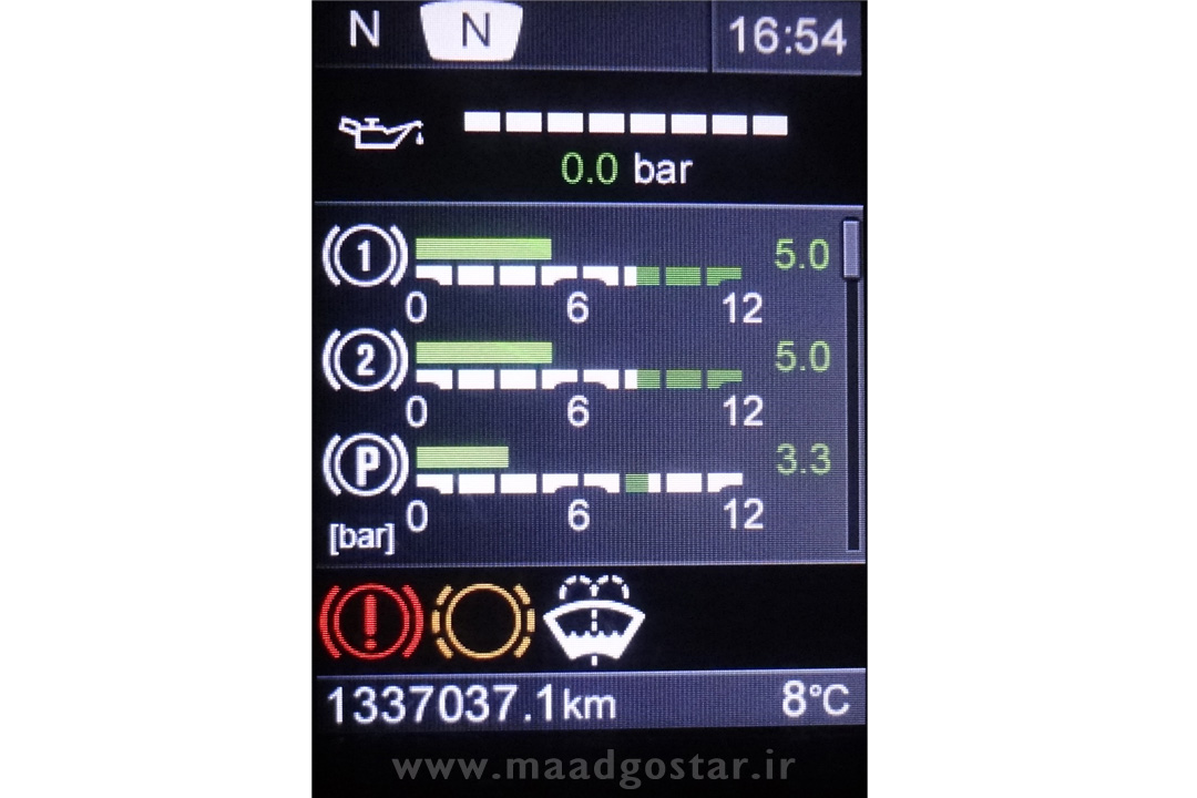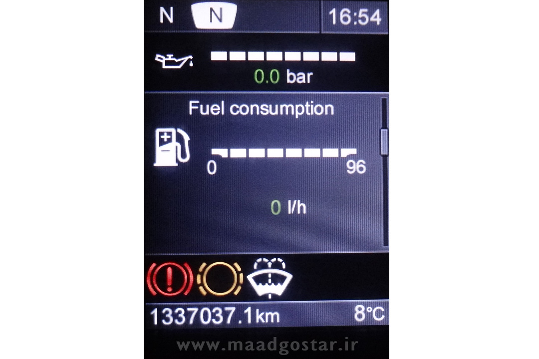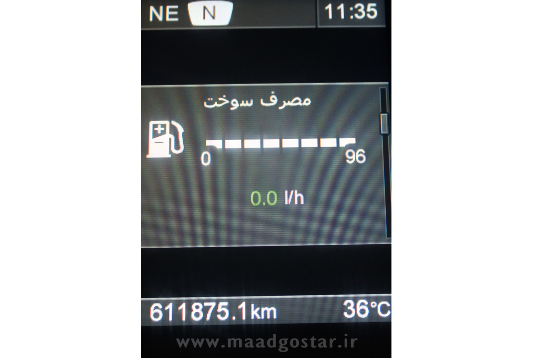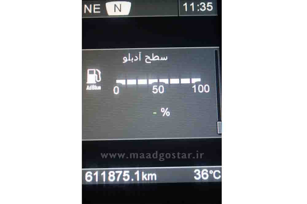 توجه : ممکن است در خودروهای با امکاناتی همانند ADBLUE ادبلو در همین منو اطلاعات مربوط به میزان مصرف ادبلو همچنین میزان دمای گیربکس را نیز نشان دهد .