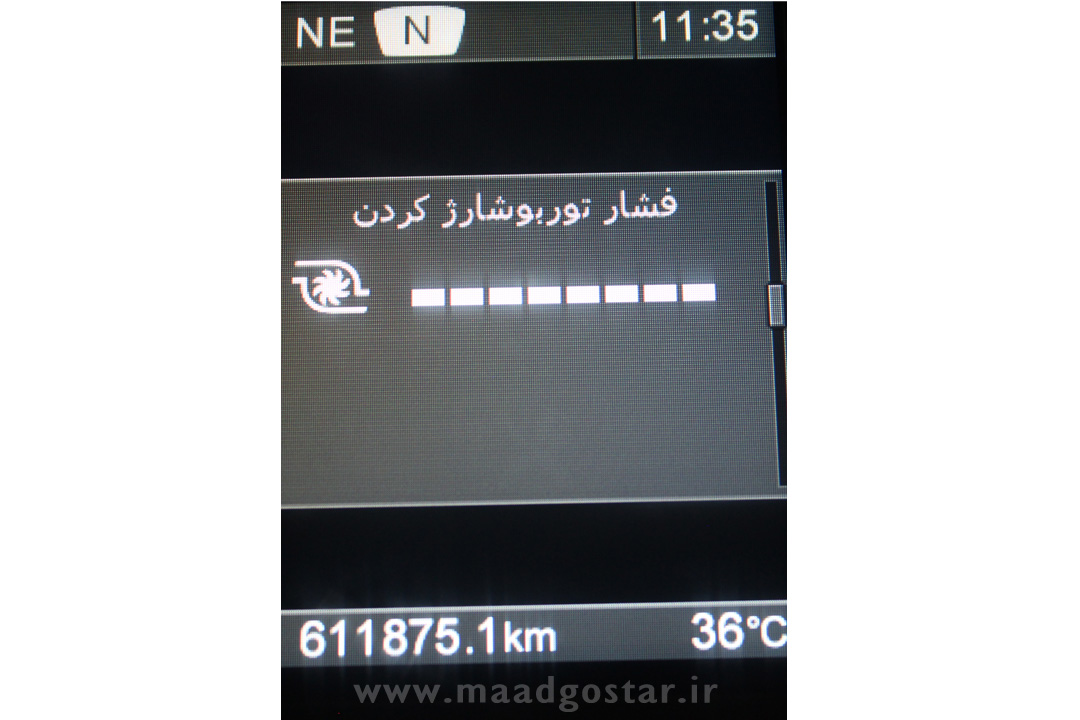 این قسمت فشار هوای ورودی ( توربو شارژ ) را نشان می دهد .(تصویر صفحه کیلومتر با زبان فارسی)