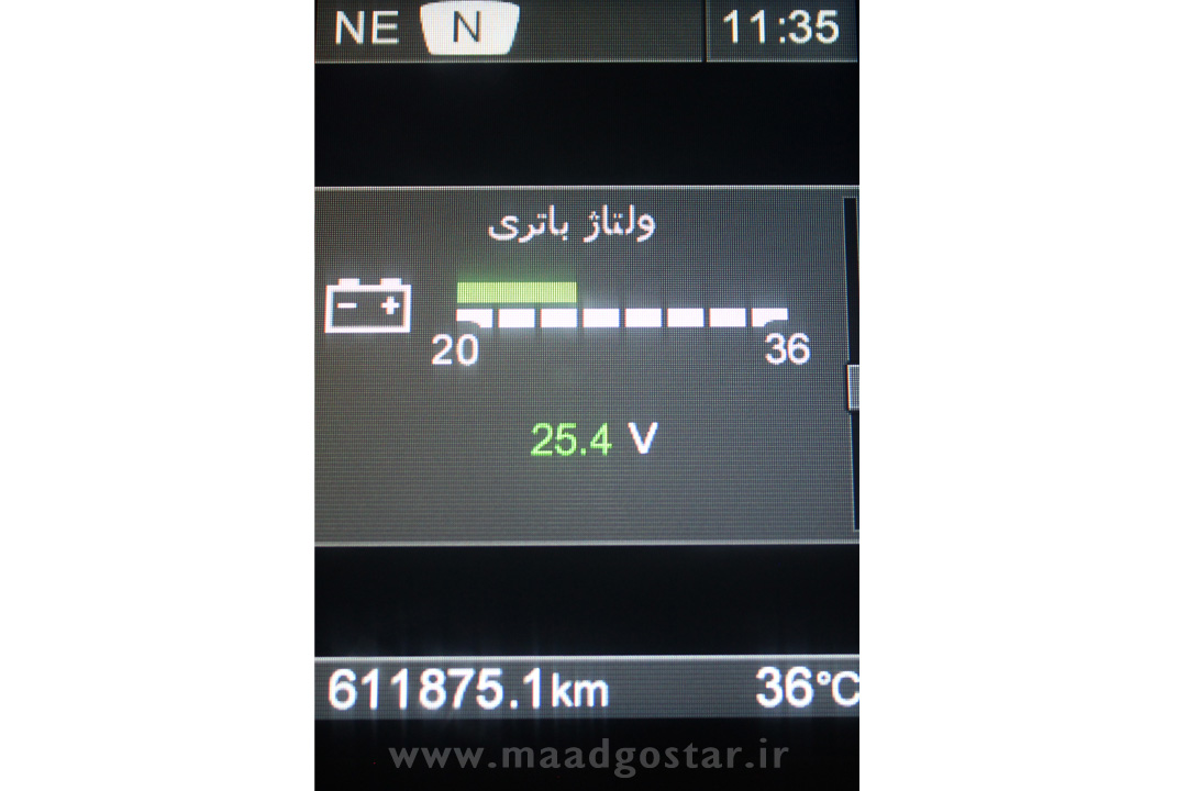 این قسمت میزان شارژ باتری را نشان می دهد .(تصویر صفحه کیلومتر با زبان فارسی)