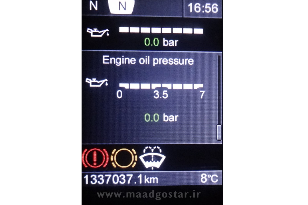 این قسمت میزان فشار روغن موتور را نشان میدهد .(تصویر صفحه کیلومتر با زبان فارسی)