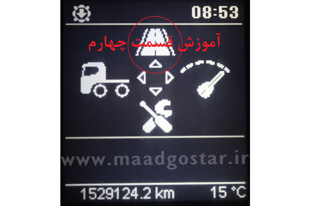 قسمت چهارم : اطلاعات سفر ( مسافت ) دراین قسمت اطلاعات سیستم کنترل سرعت ، مسافت سنج و زمان رانندگی را مشاهده مینمائید .
