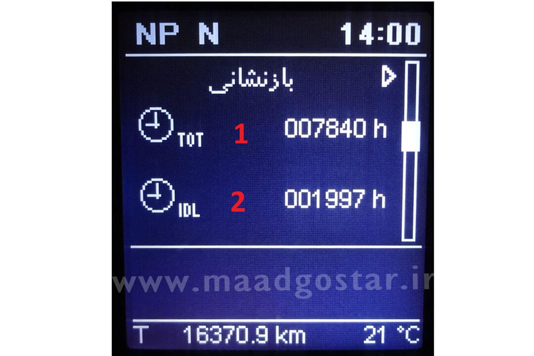 شماره 1 : مدت زمان کارکرد کل سفر نشان داده شده است . شماره 2 : مدت زمان کارکرد درجا خودرو نشان داده شده است .