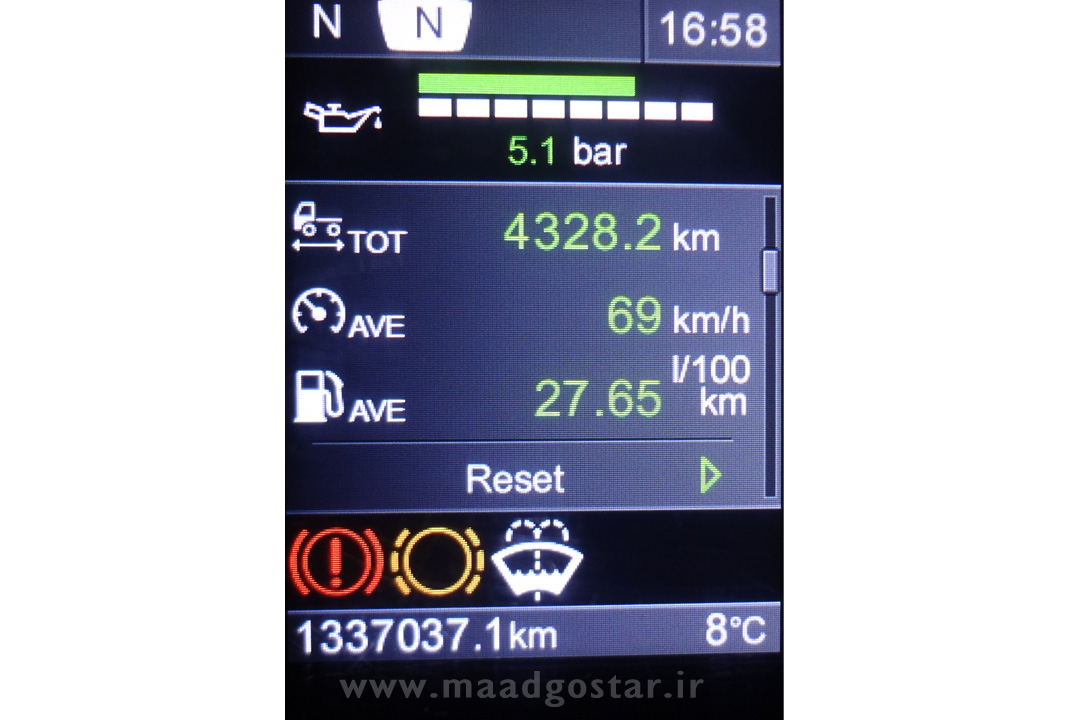 در این قسمت اطلاعات سیستم کنترل سرعت، مسافت سنج و زمان رانندگی را به زبان فارسی مشاهده می نمایید.