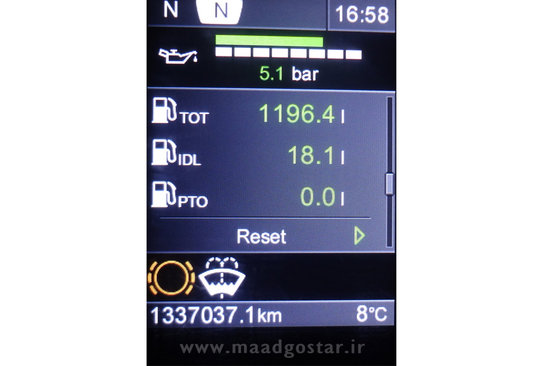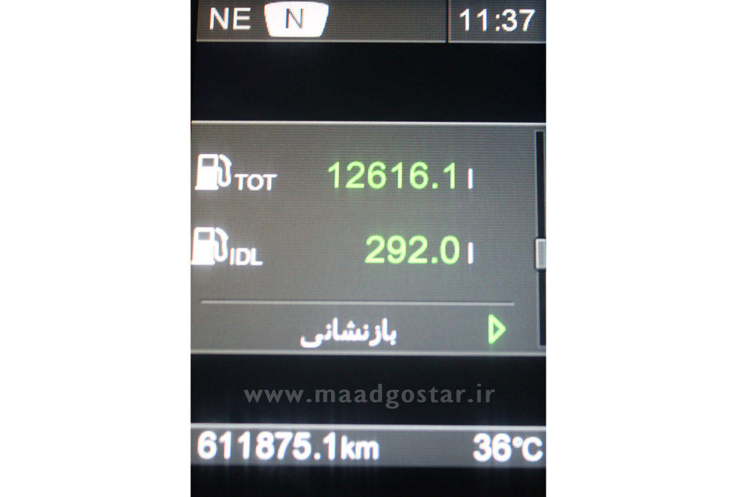 شماره 1 : میزان کل مصرف سوخت نشان داده شده است . شماره 2 : میزان مصرف سوخت در حالت کارکرد درجا خودرو نشان داده شده است .
