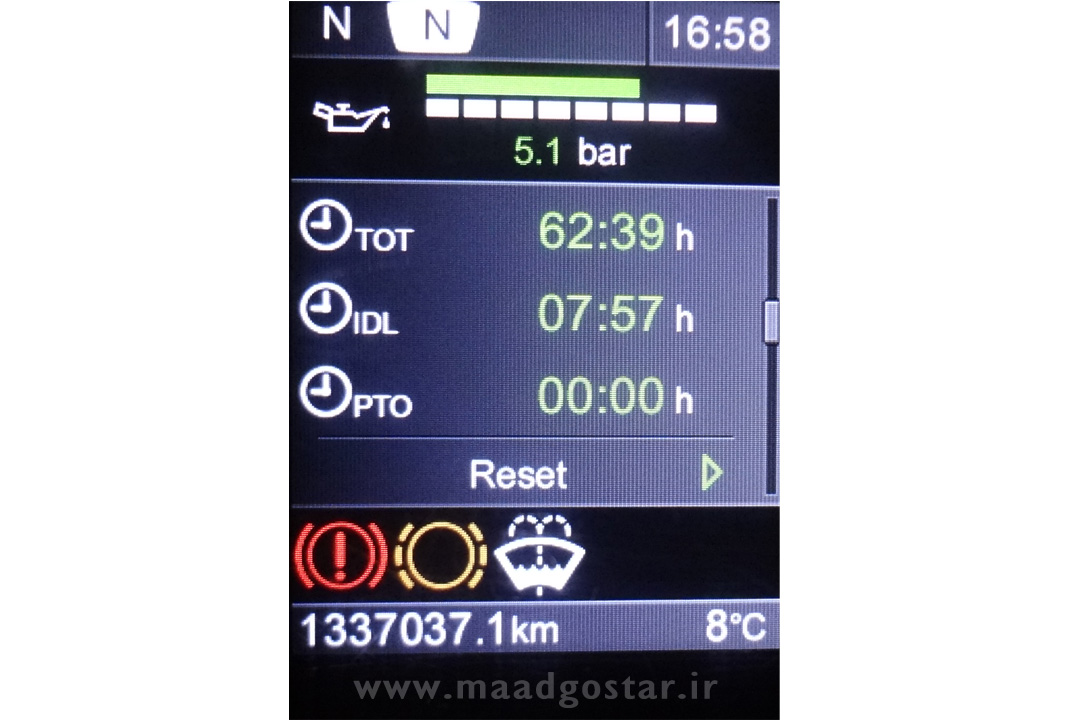 همان طور که مشاهده می نمایید در پایین تصویر گزینه بازنشانی وجود دارد که در صورت تمایل راننده به بازنشانی (ریست نمودن) اطلاعات سفری که به پایان رسیده است اطلاعات صفر شده و اطلاعات سفر جدید مجددا نمایش داده خواهد شد.