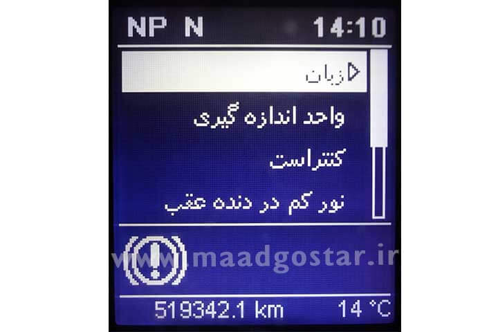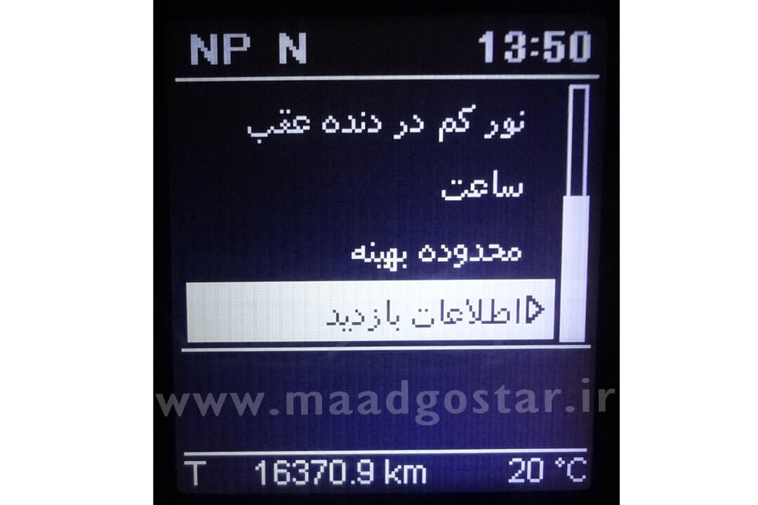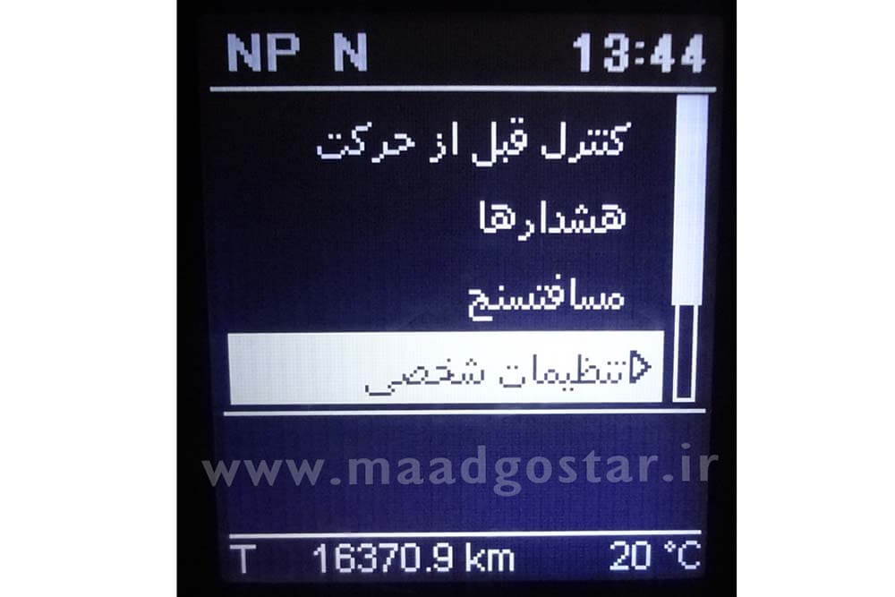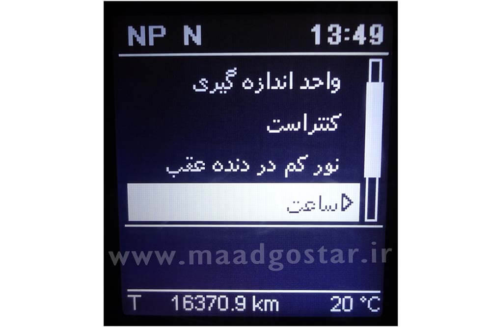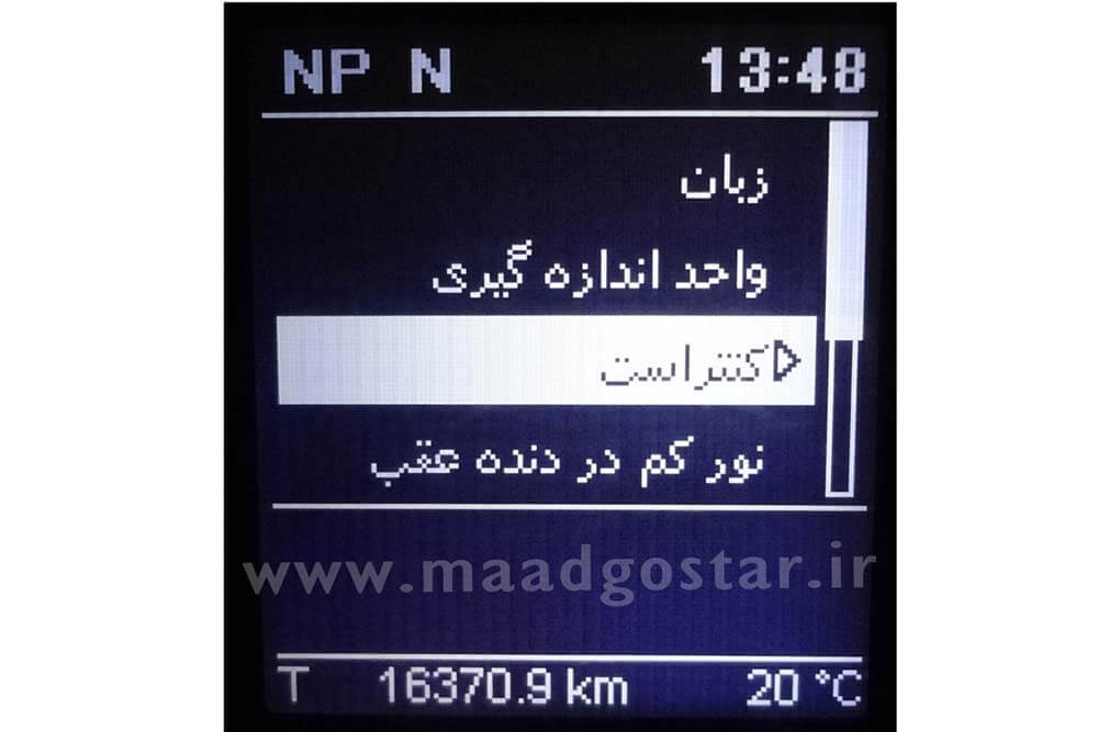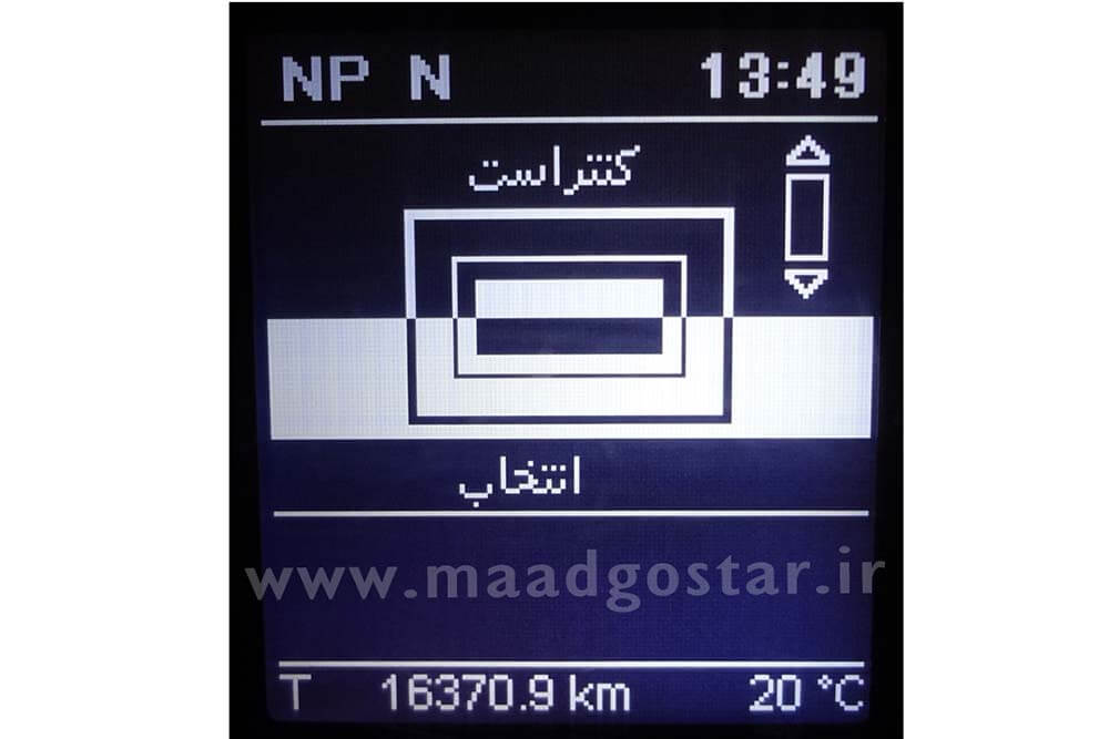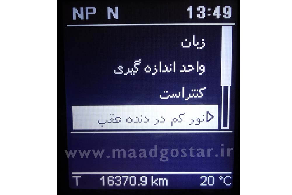 در این قسمت میتوانید میزان نور صفحه نمایشگر در زمان حرکت دنده عقب خودرو ، را تنظیم نمائید تا نور نمایشگر مزاحم دید راننده نشود .