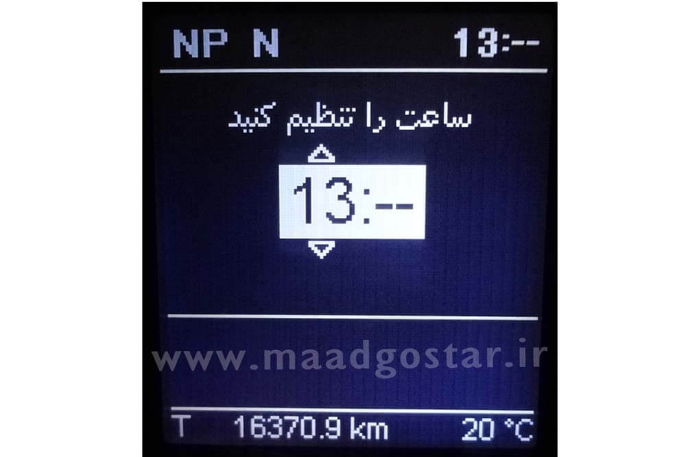 همانطور که در تصویر مشاهده مینمائید میتوانید با استفاده از کلیدهای جهت دار چپ و راست بر روی ساعت و دقیقه رفته و با استفاده از کلیدهای جهت دار بالا و پایین مقدار آنها را تنظیم نمائید .