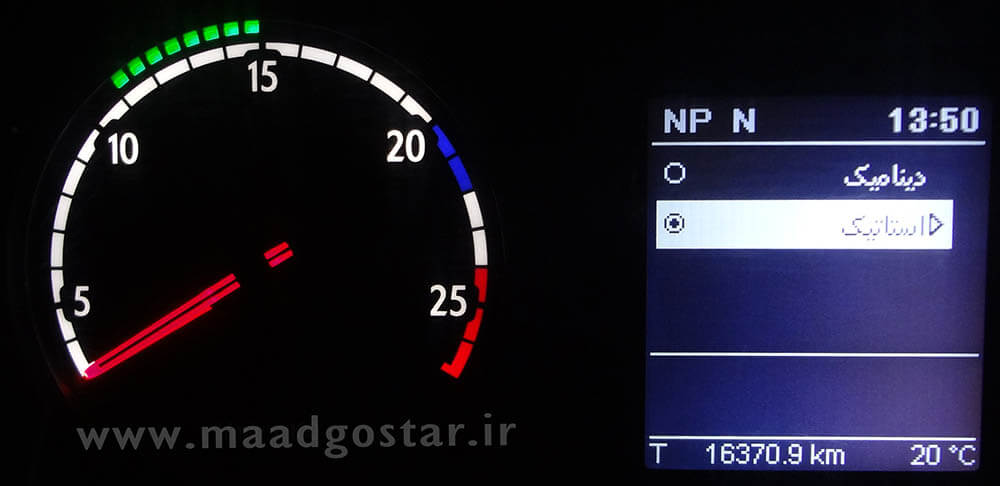 واحد لیتر واحد گالن محدوده بهینه شامل دو قسمت میباشد . 1- دینامیک . 2- استاتیک . در حالت اول دینامیک محدوده سبز دورسنج کیلومتر خاموش بوده و زمانی که دورموتور به حالت بهینه خود برسد ال ای دی های سبز روشن میشوند .