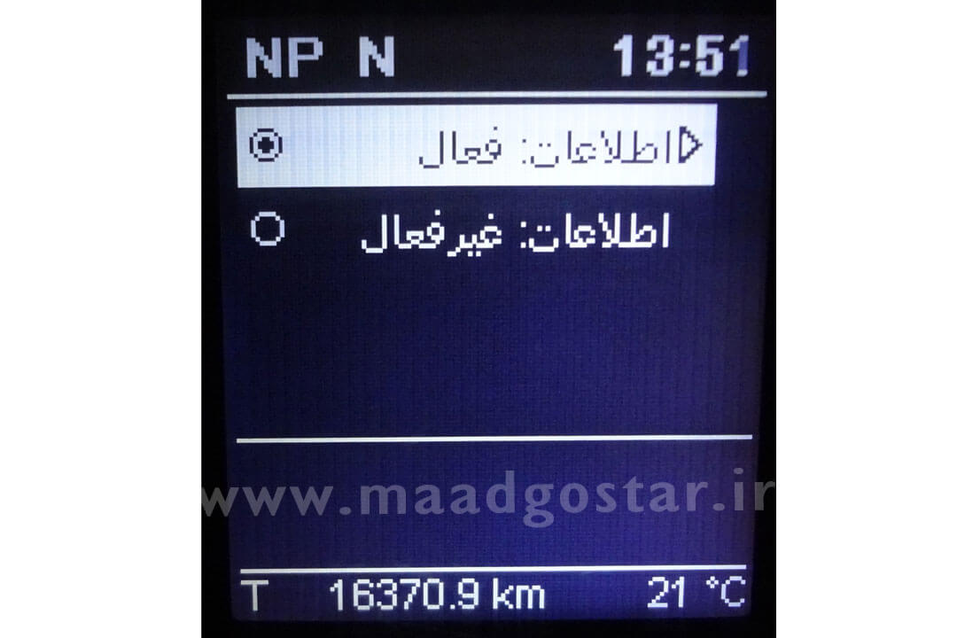 در این منو میتوانید با فعال و غیر فعال نمودن آن نمایش اطلاعات سرویس و نگهداری را در صفحه نمایشگر کنترل نمائید ، که نشان داده شود یا خیر .