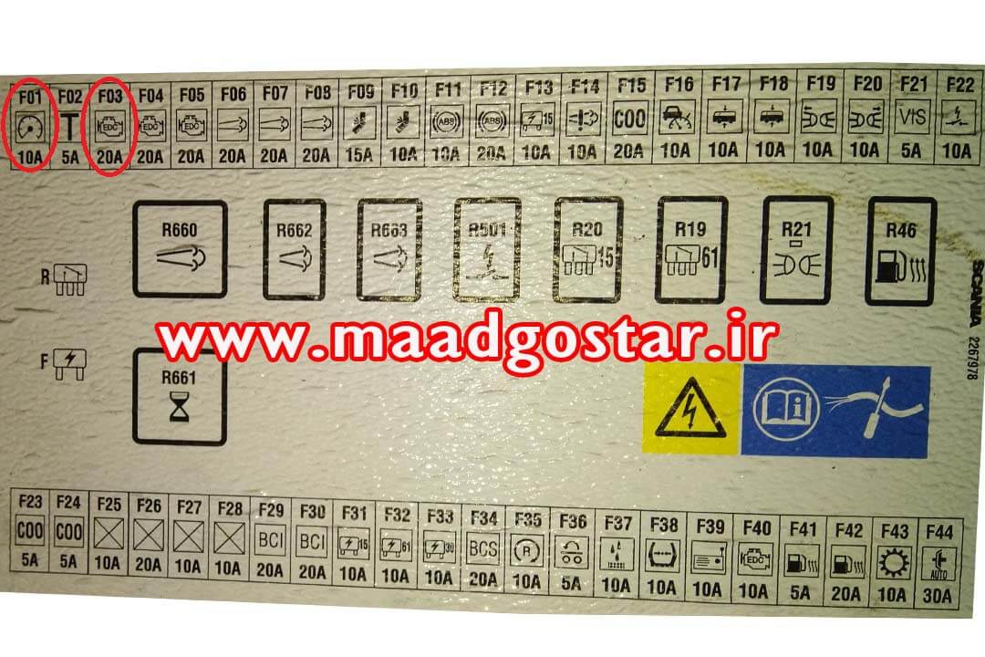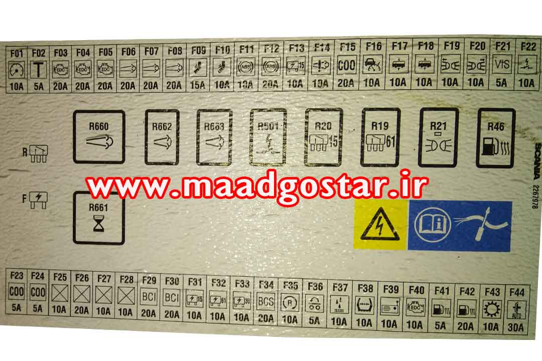 تصویر فوق یک نمونه از راهنمای تابلو برق اسکانیا می باشد که ملاحظه می فرمایید.
