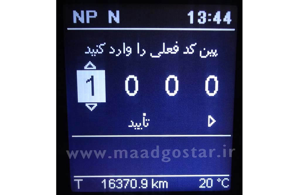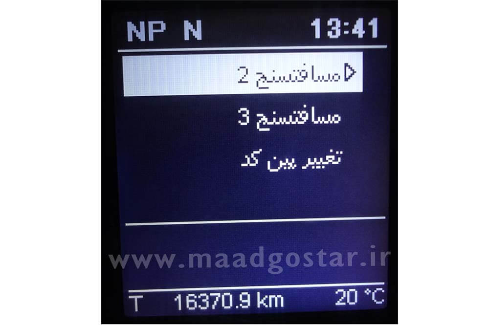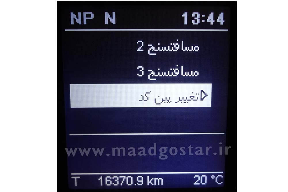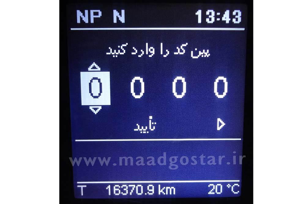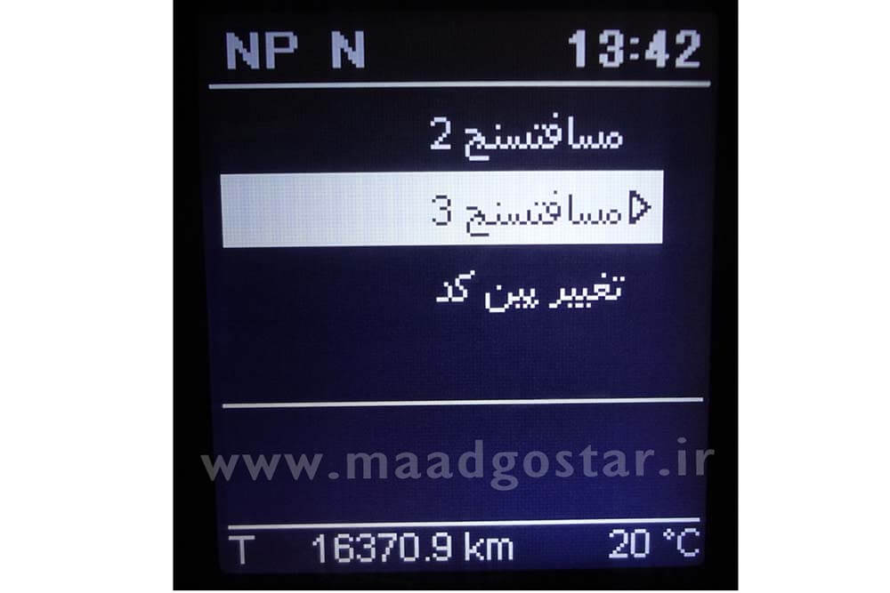 در قسمت مسافت سنج 3 برای بازنشانی اطلاعات نیاز به پین کد میباشد . همانطور که ملاحظه مینمائید این پین کد 4 رقمی بوده و تنظیم کارخانه این کد 4 عدد 000 صفر میباشد . میتوانید برای ذخیره سازی سفرهای بلند مدت یک کد چهار رقمی جدید وارد کنید .