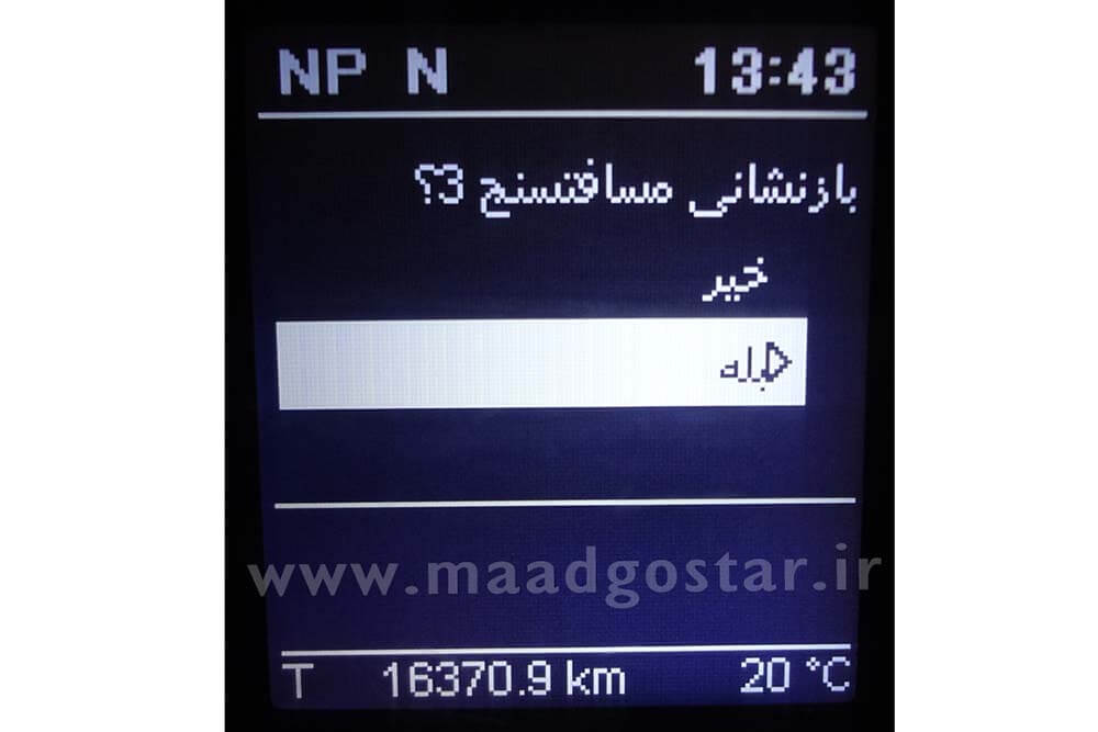 درصورتیکه از گزینه بازنشانی استفاده نمائید تصویر فوق را مشاهده خواهید نمود و با انتخاب گزینه بله تمامی اطلاعات مسافت سنج مربوطه بازنشانی خواهد شد .