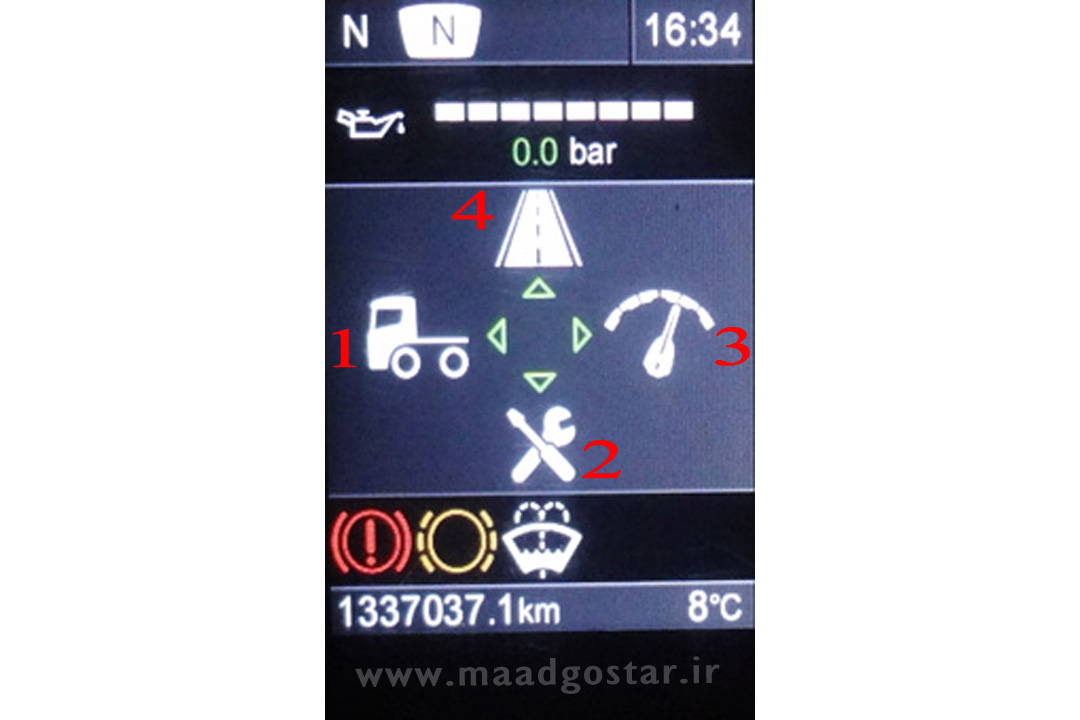 منوی صفحه کیلومتر چهار قسمت دارد که بترتیب شماره آموزش داده میشود .