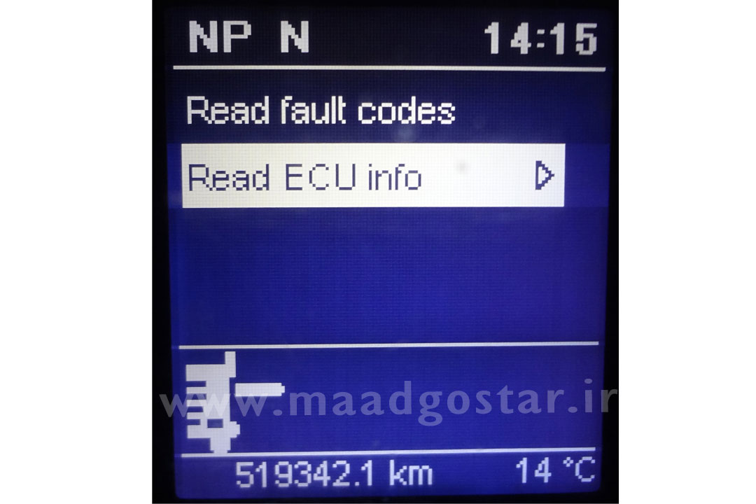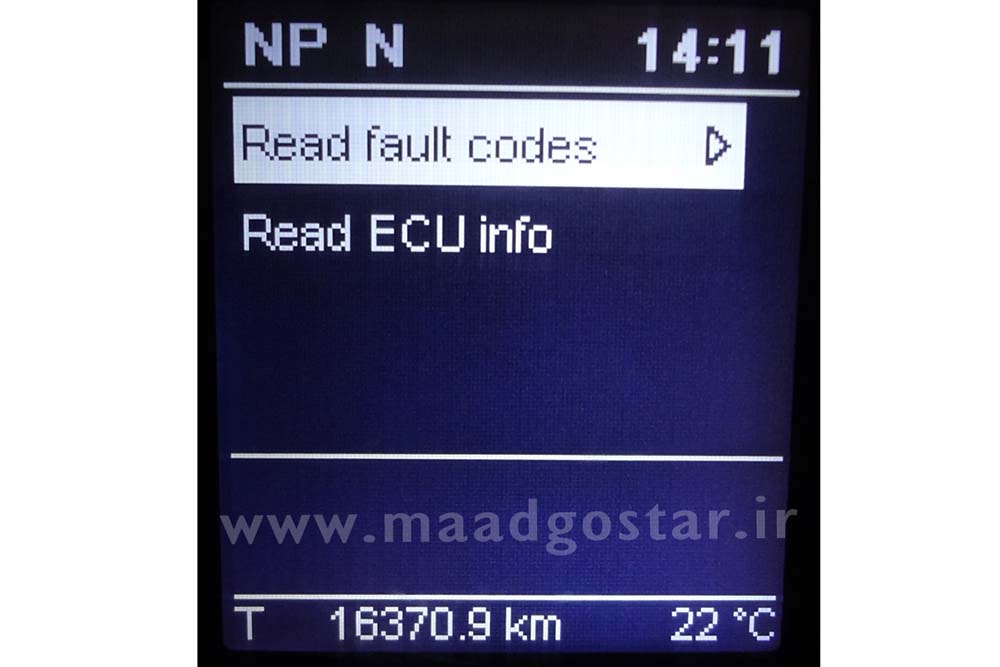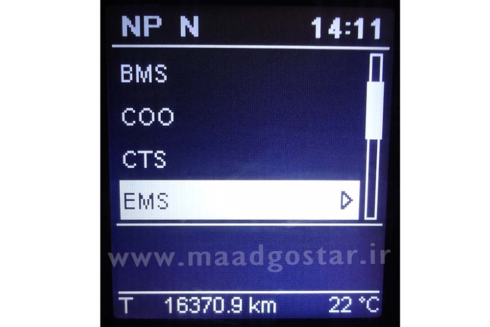 پس از انتخاب سیستم EMS ، وارد این منو میشوید . این منو دارای دو قسمت میباشد : 1- خواندن کدهای خطا 2- خواندن اطلاعات ECU برای مشاهده کد خطا منوی اول را انتخاب کنید و دکمه سمت راست را فشار دهید .