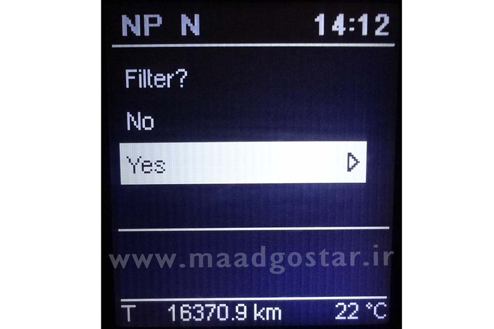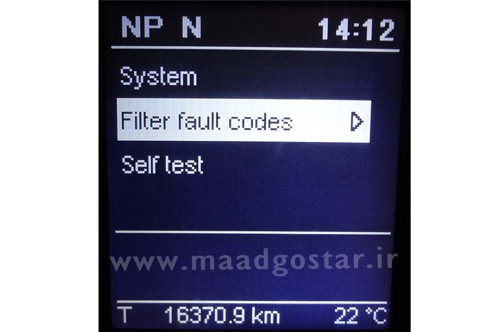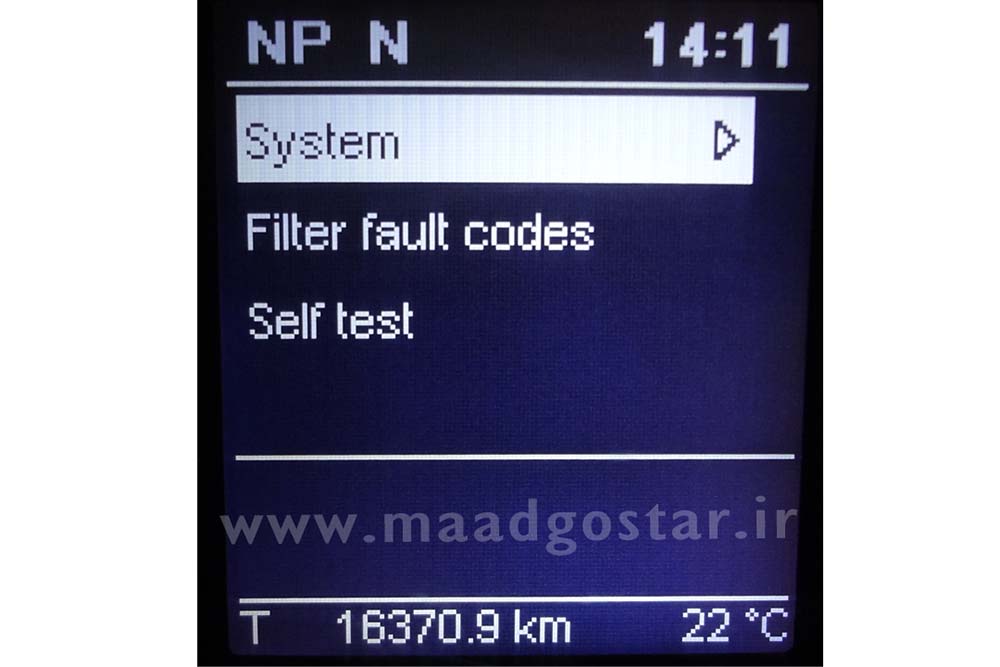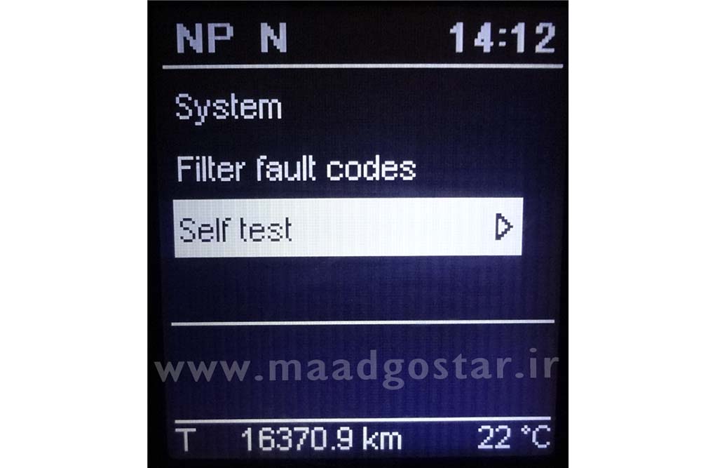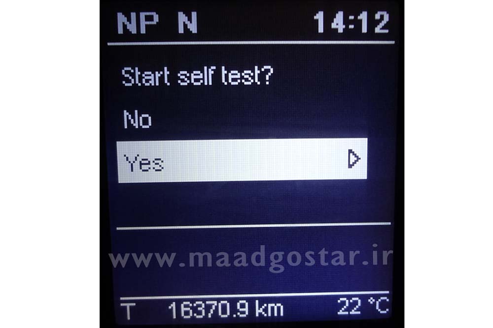 خودآزمایی سیستم : از این منو جهت تست کلیه لامپ ها ، صفحه نمایش و آمپرهای کیلومتر استفاده میشود. برای وارد شدن دکمه سمت راست را بزنید.