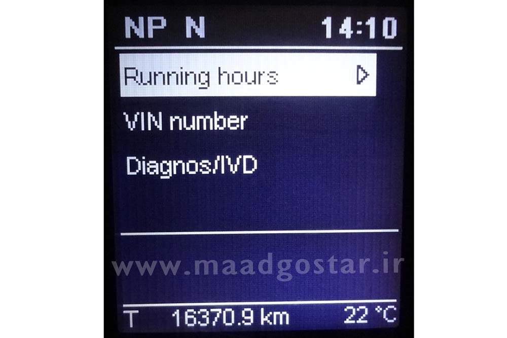 منوی اول وقتی وارد ساعات کارکرد شویم شما میزان ساعات کارکرد موتور خودرو خود را مشاهده مینمائید .