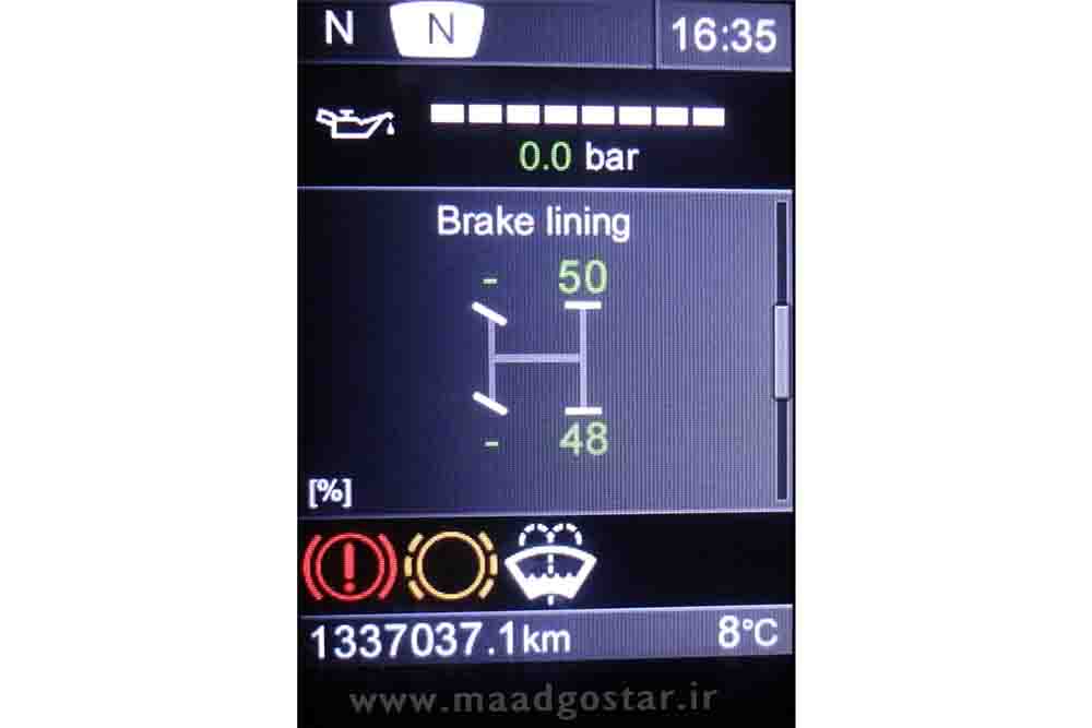 در این قسمت میزان درصد لنت ترمز هر چراغ نشان داده می شود.