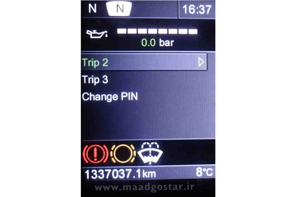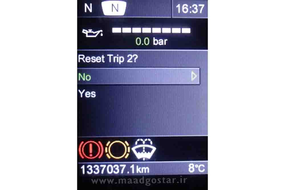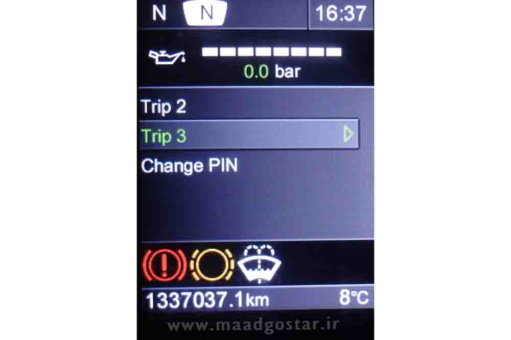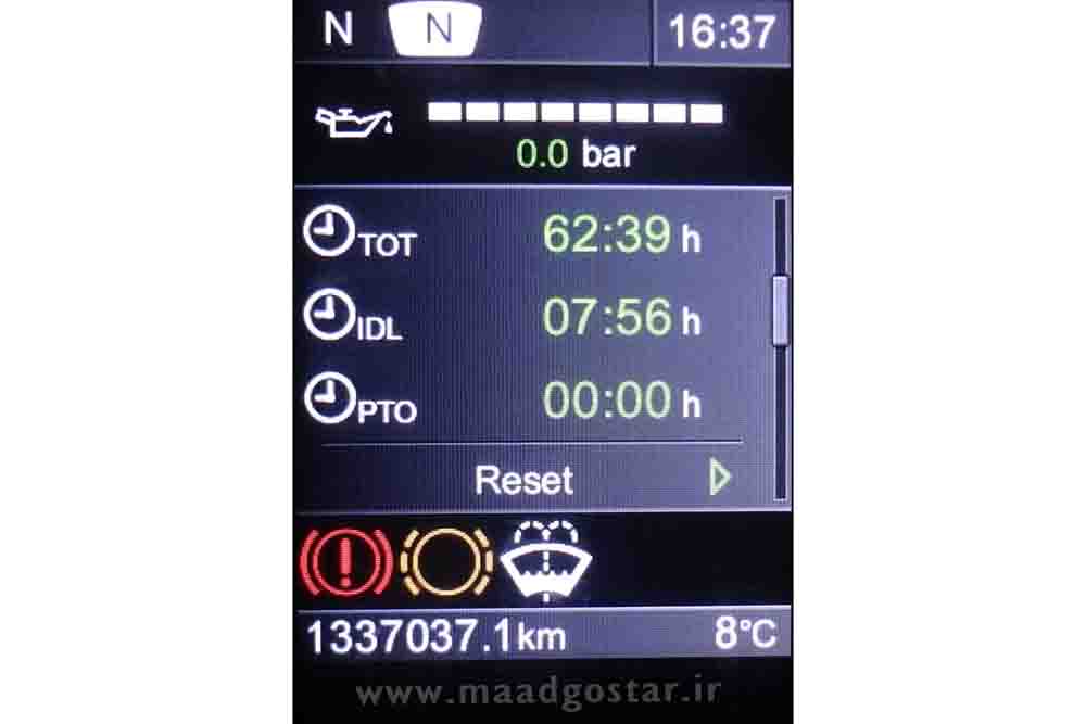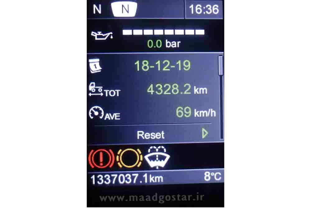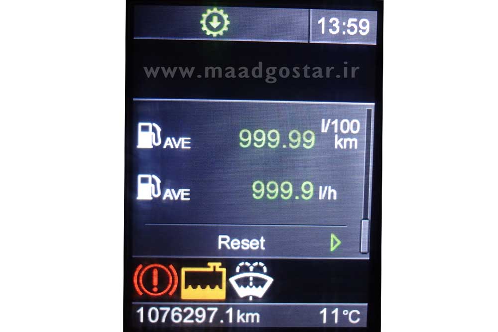 این قسمت میزان کل مصرف سوخت در سفر ، همچنین میزان مصرف سوخت در حالت کارکرد درجا خودرو در سفر را نشان میدهد . جهت بازنشانی از منوی بالای این قسمت استفاده نمائید .