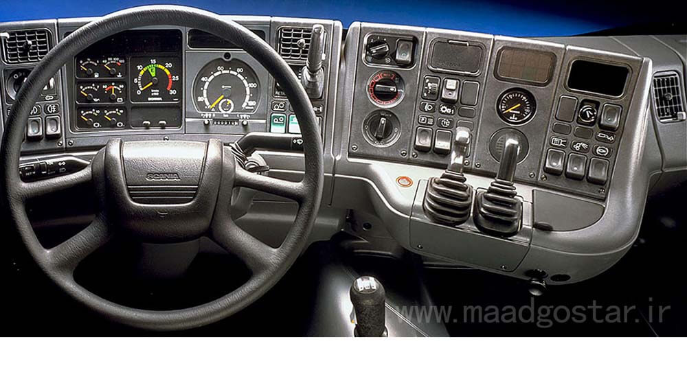 همانطور که در تصویر بالا مشاهده میکنید یکی از قدیمی ترین داشبوردهای اسکانیا را ملاحظه میکنید که هنور از این مدل صفحه کیلومتر در اتوبوس های بین شهری اسکانیا در ایران استفاده میشود .