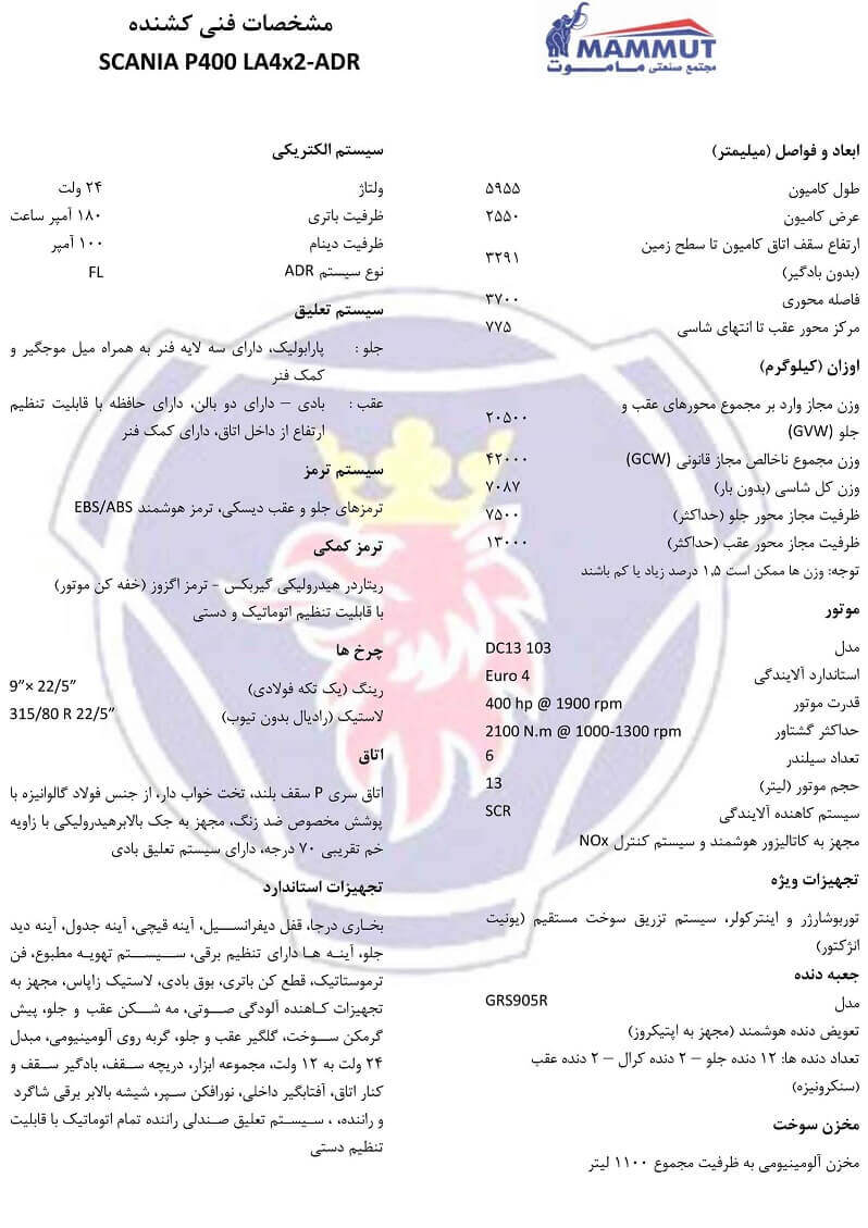 مشخصات فنی کامیون اسکانیا مدل P400