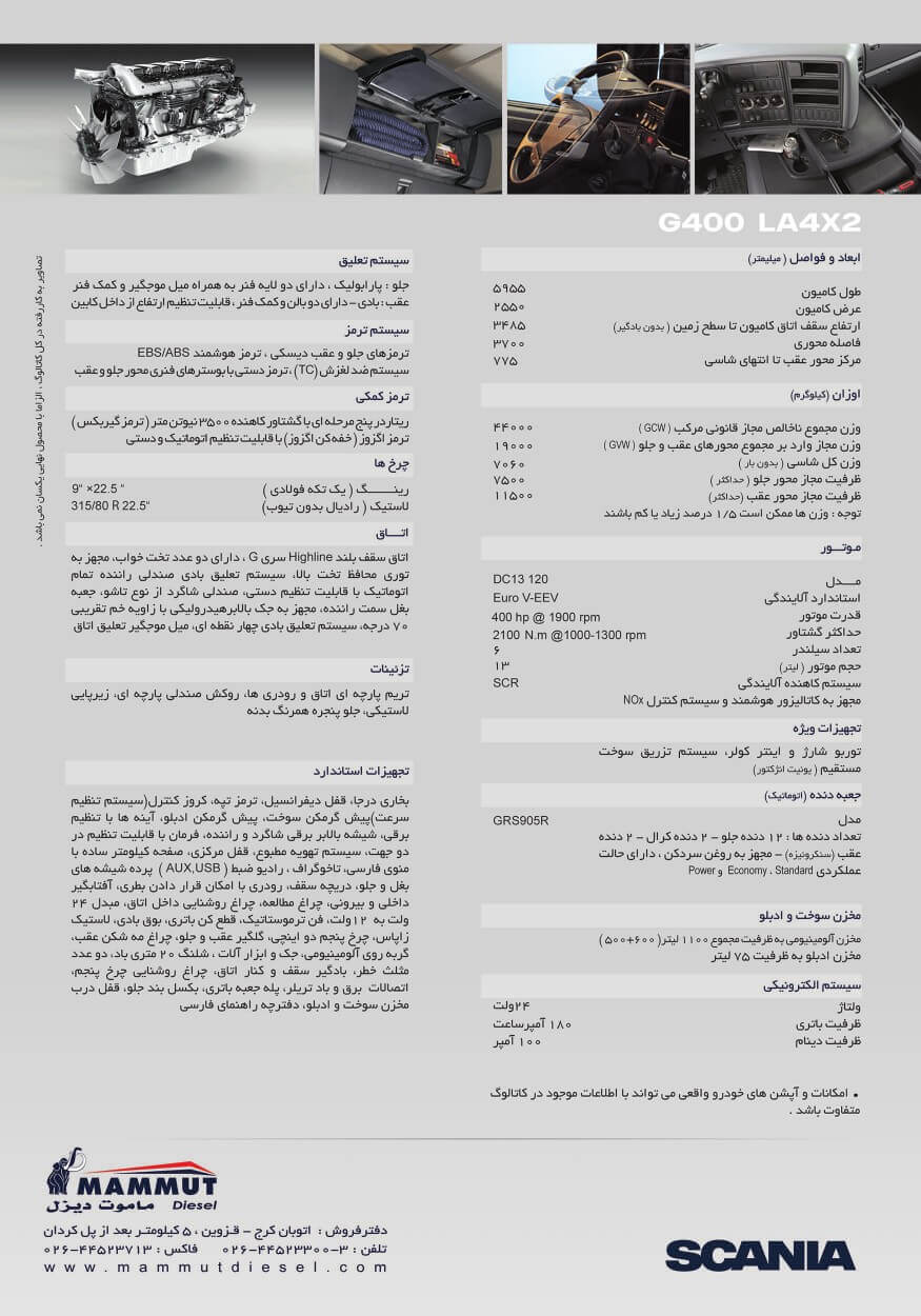 مشخصات فنی کامیون اسکانیا مدل G400